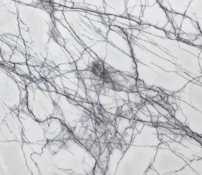 Calacatta Lilac Marble is a captivating natural stone, featuring a luminous white background with striking purple and deep grey veining. Its bold, artistic patterns make it a perfect choice for creating statement pieces like countertops, backsplashes, and feature walls.